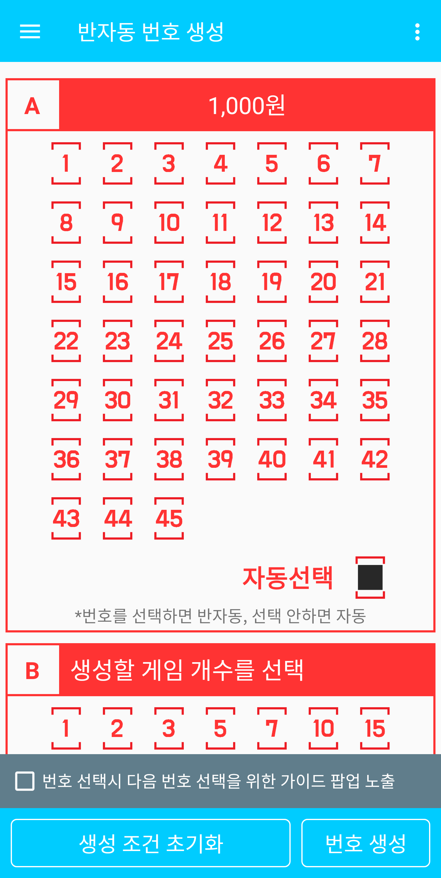 * 반자동(자동) 로또 번호 생성 기능을 제공합니다.