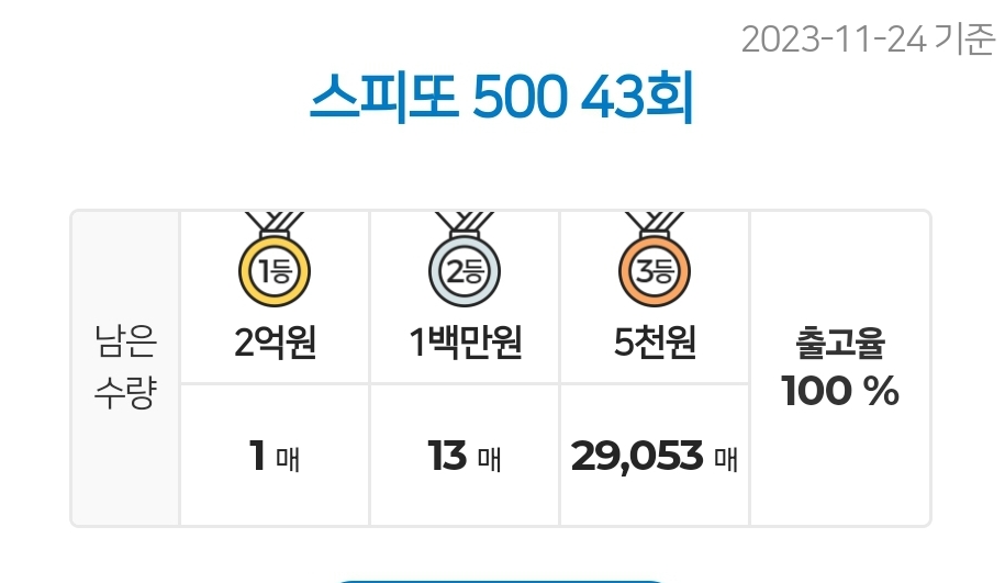 (2023.11.24 기준) 스피또500 43회 출고율 / 스피또500 43회 당첨현황