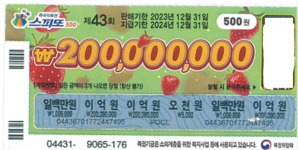 43회 스피또500 복권 1등 당첨을 기원합니다.