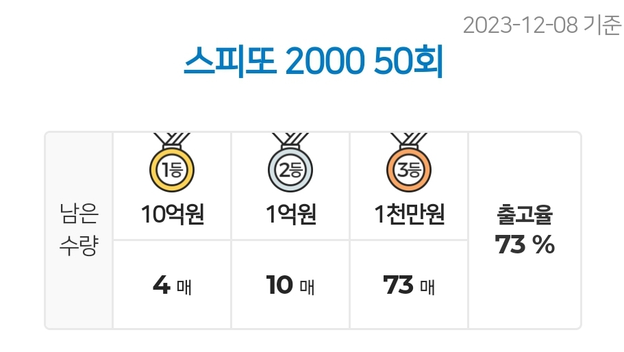 (2023.12.01 기준) 스피또2000 50회 출고율 / 스피또2000 50회 당첨현황