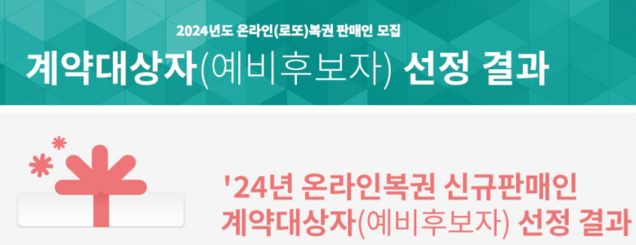 2024년 온라인(로또)복권 판매인 모집 ‘계약대상자(예비후보자 포함) 선정‘ 결과가 발표되었습니다.