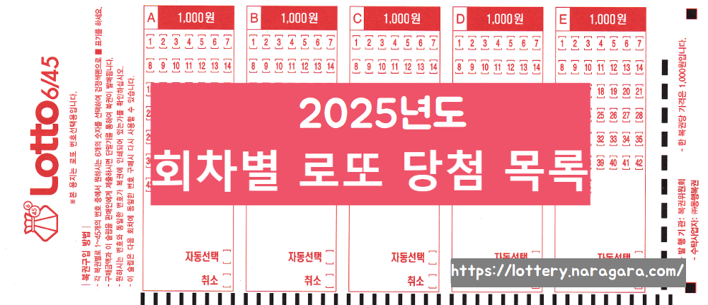 2025년도 회차별 로또 당첨번호 확인을 위한 목록입니다.