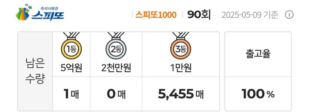 [2025.05.09기준] 스피또1000 90회 출고율(판매점 입고율) / 스피또1000 90회 당첨현황