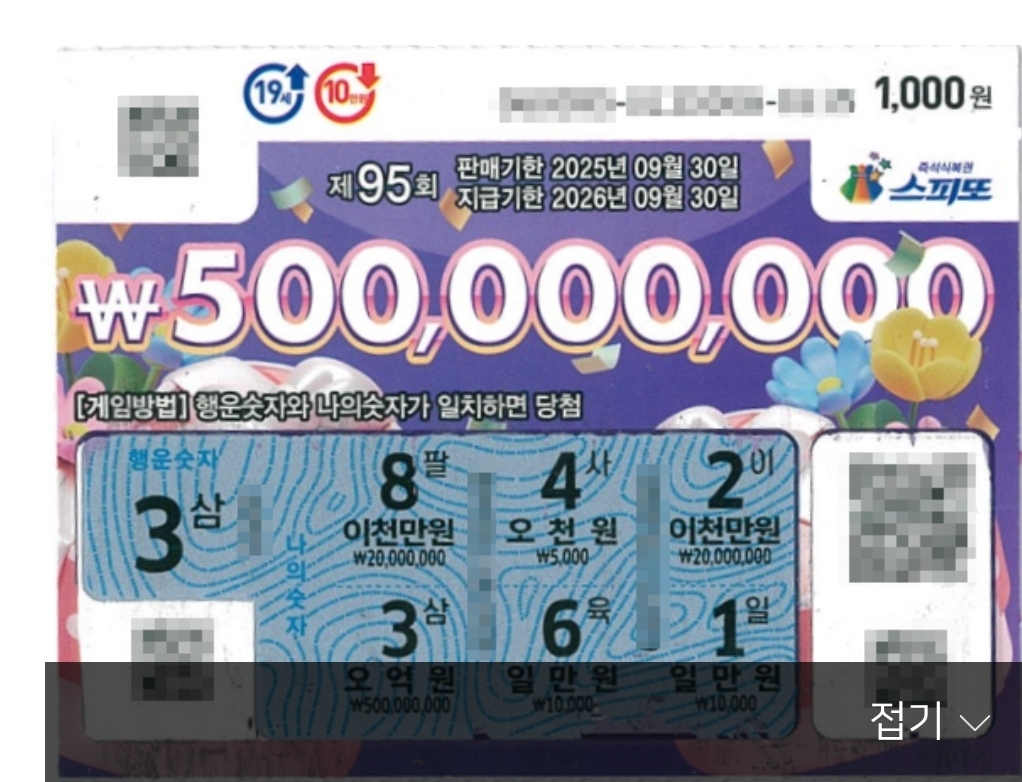 제 95회 스피또1000 판매기간 2025년 9월 30일까지 입니다.