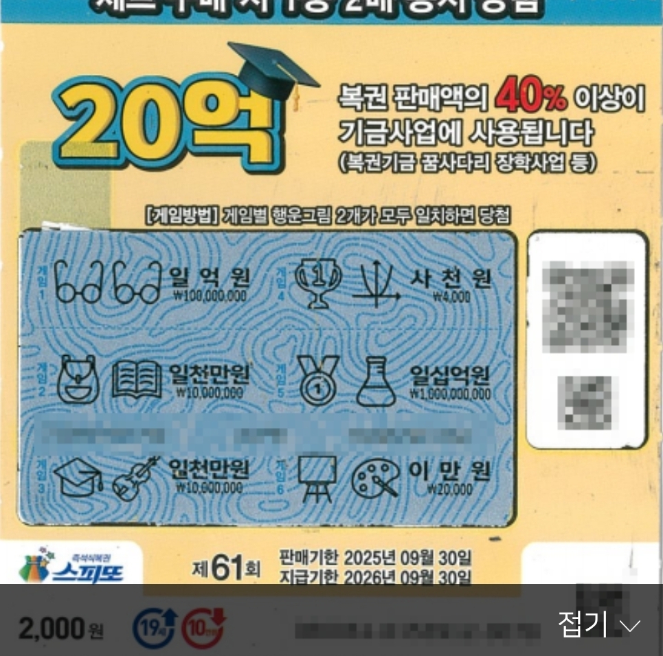 제 61회 스피또2000 판매기간은 2025년 9월 30일까지입니다.