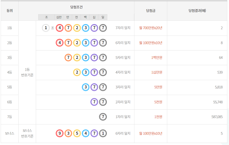 - 연금복권 2등 당첨자와 보너스 번호 당첨자는 매달 100만원을 10년간 연금식으로 받게 됩니다.