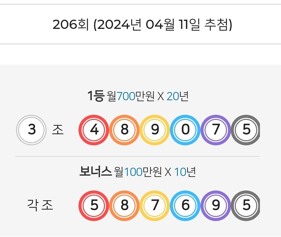 • 연금복권 5등 당첨자5만원을 일시 지급 받습니다.