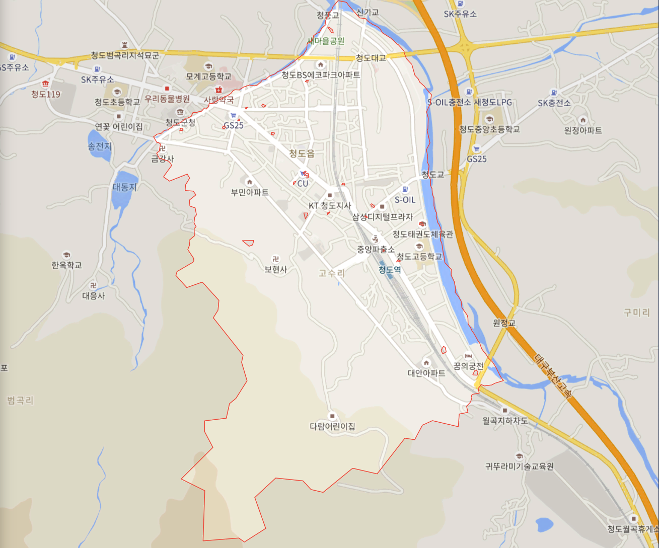 | SKY정보통신 | 1 | 경북 청도군 청도읍 고수리 478-153번지 |