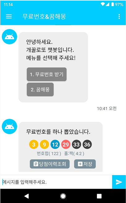 다른 한 게임은 개꿀로또 챗봇한테 무료번호를 받아서 하거나,