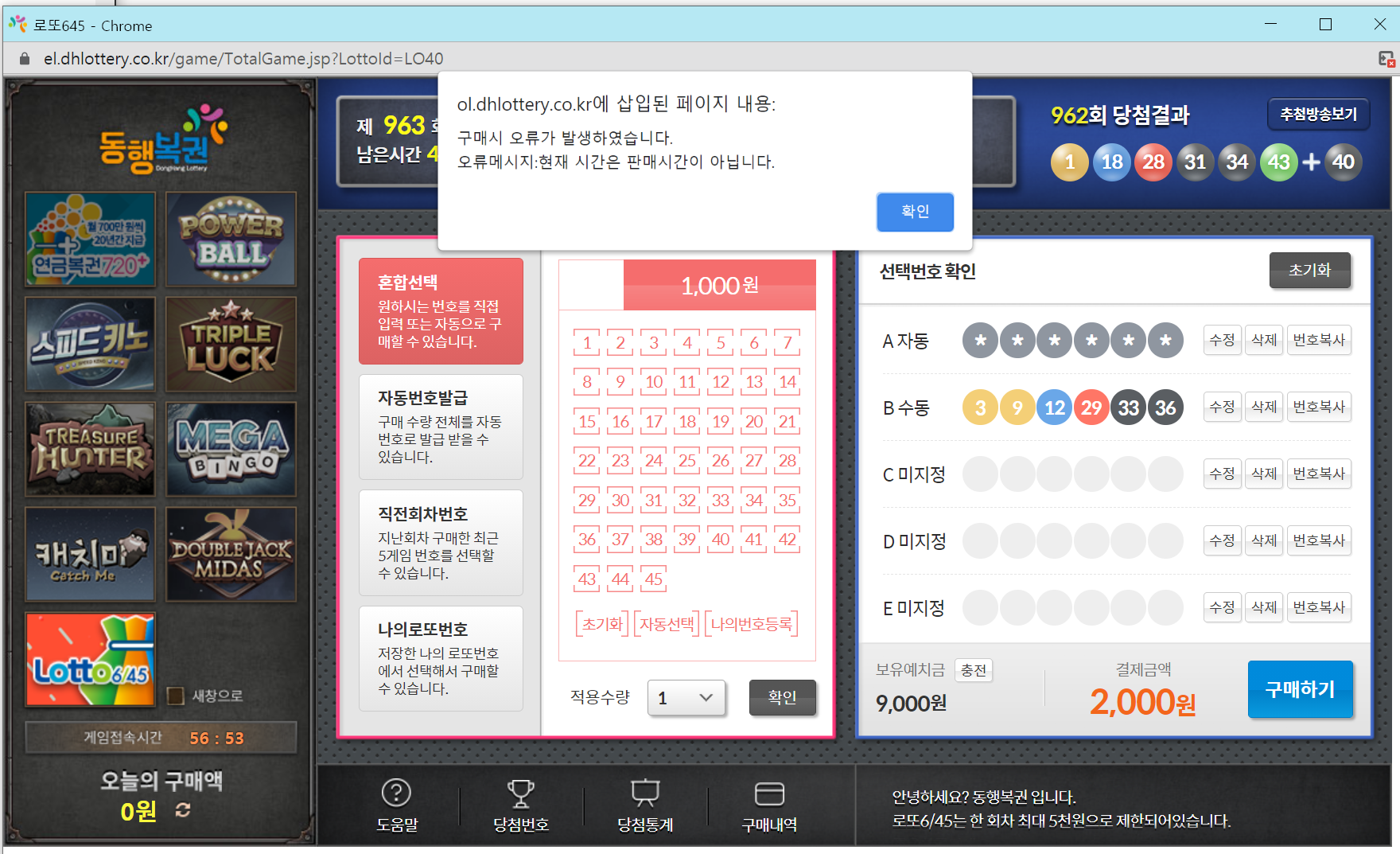 온라인 동행복권 사이트에서 구매를 하고 있어요.