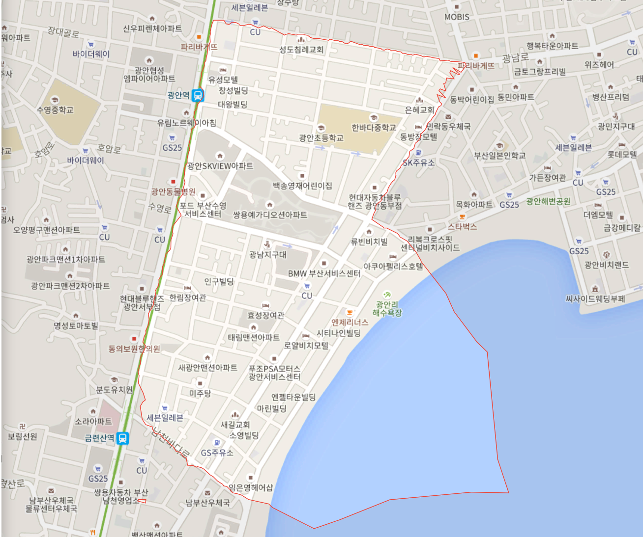 | CU(민락해변점) | 4 | 부산 수영구 민락동 176-14번지 |