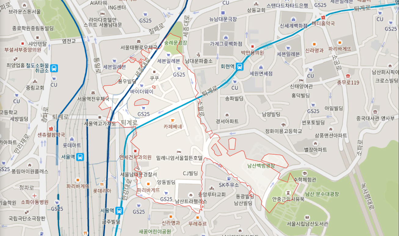 대한민국 서울특별시 중구 남대문로5가 지도표기