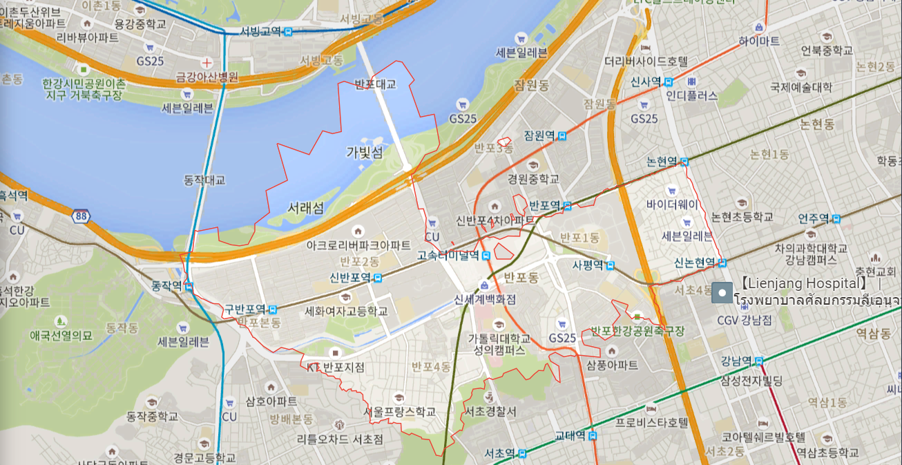 | GS25(반포2점) | 2 | 서울 서초구 반포동 741 |