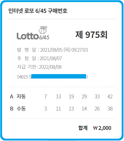 - 추첨일 오후 8시부터 다음날(일요일) 오전 6시까지는 판매가 정지됩니다.