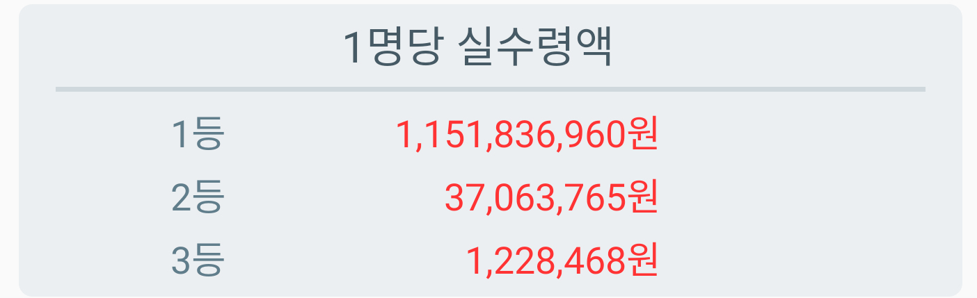 | 순위 | 당첨게임 수 | 1게임당 당첨금액 |