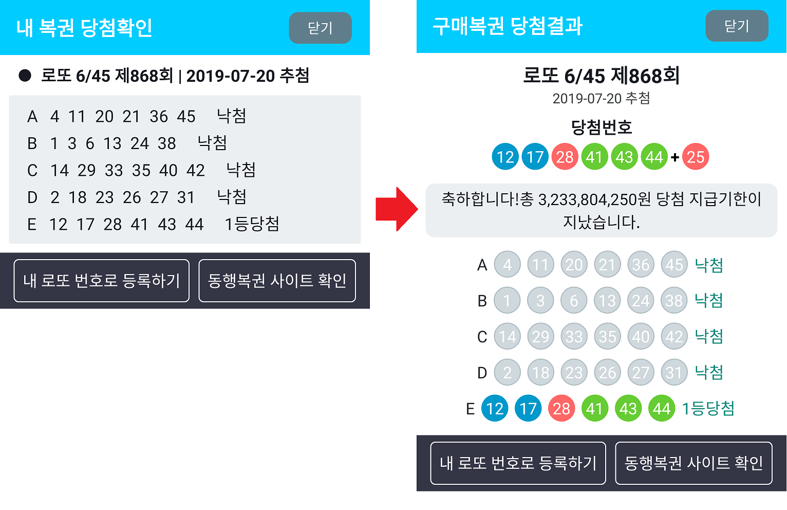 로또 구입 용지의 QR코드를 스캔한 결과에 대한 UI 화면을 개선하였습니다.