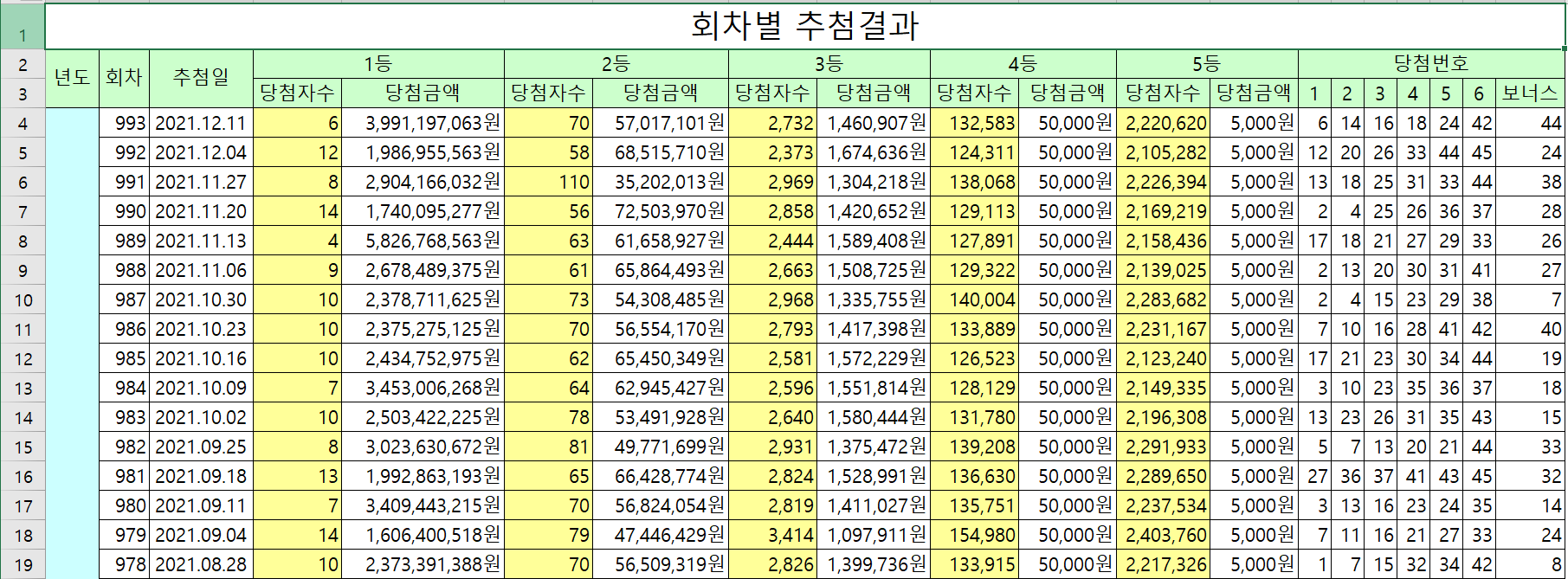 #로또 당첨번호 전체보기#, #로또 역대 당첨번호 정리 엑셀#, #로또 당첨번호 모음 엑셀#, #역대 로또 당첨번호 조회#, #로또 전체 당첨번호, #로또 역대 당첨번호, #로또 당첨번호 전체 보기, #지난회차 전체보기, #동행복권,#역대 로또 당첨번호#, #로또 1~993회 당첨번호#,#로또 회차별 당첨번호 전체#, #로또 회차별(1회~993회) 당첨번호#