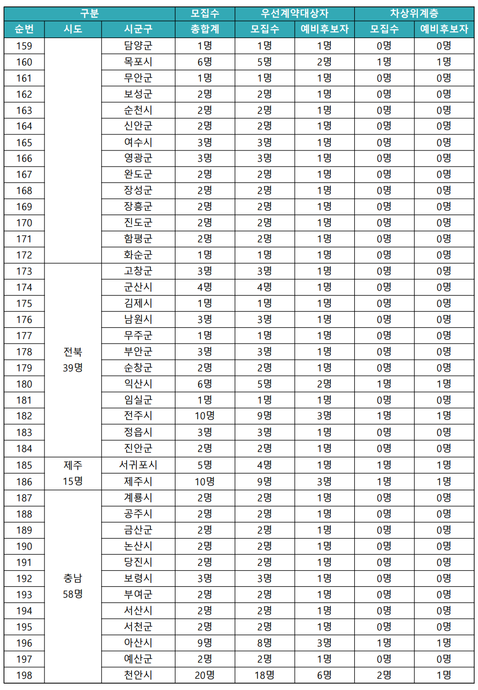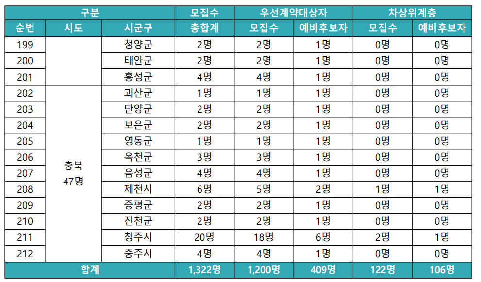 나. 모집지역 : 전국 212개 시․군․구 지역