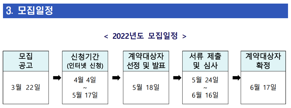 1) 신청기간 : 2022. 4. 4(월) 10:00 ~ 2022. 5. 17(화) 18:00