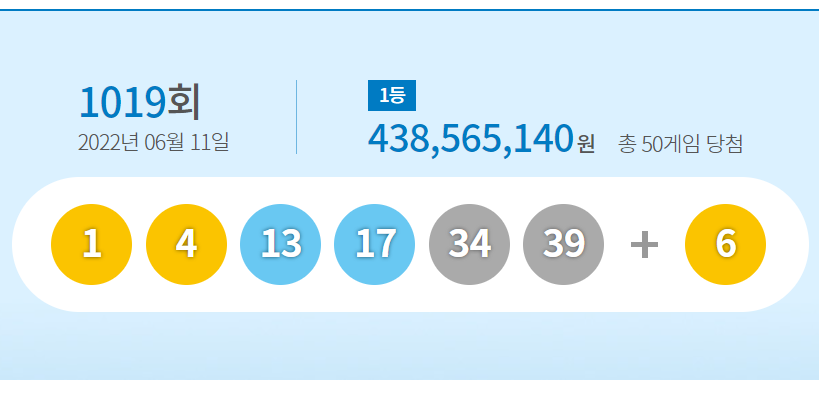 - 로또 1등 당첨게임 수 : 50게임 ( 당첨금액 : 438,565,140원)
