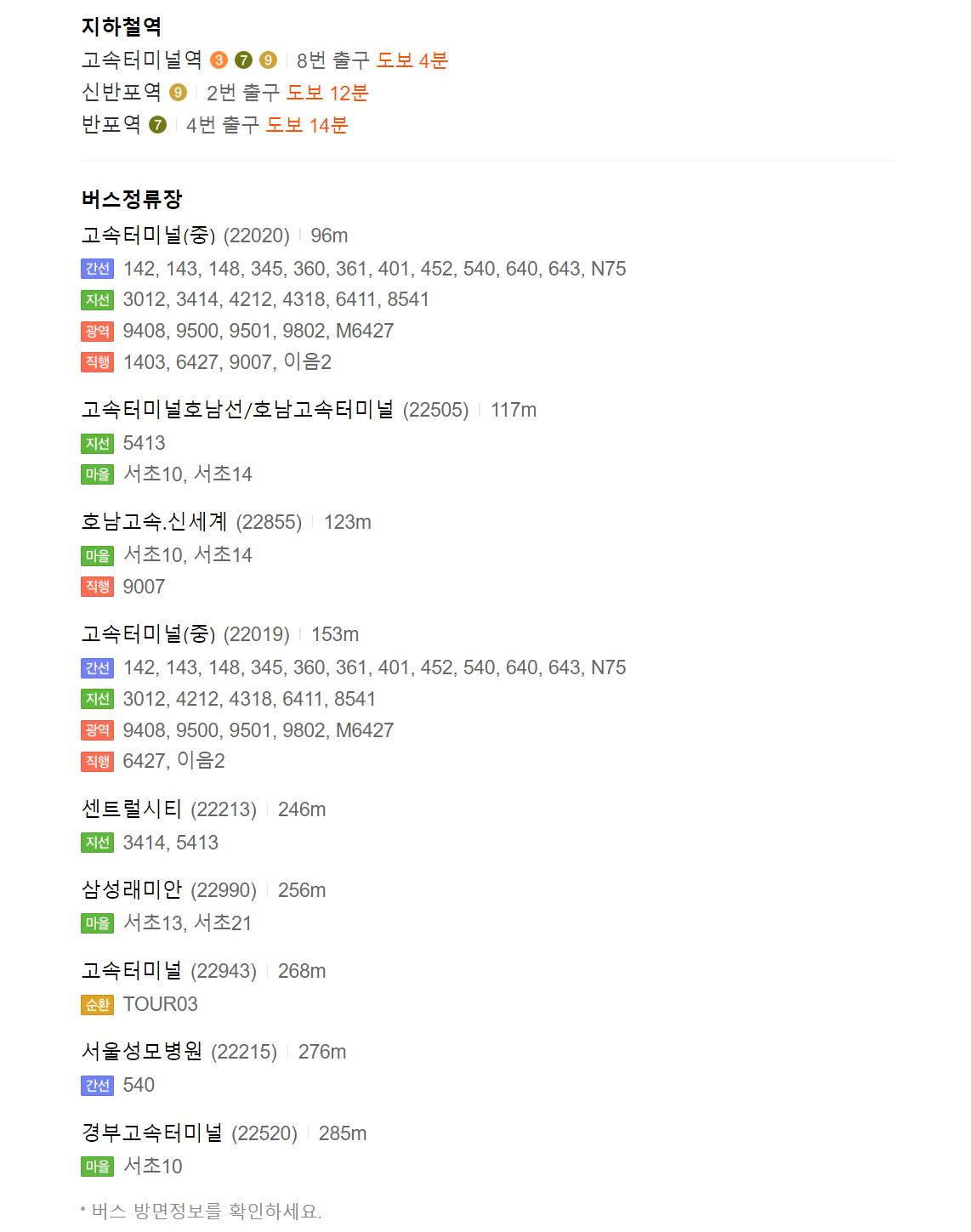 3호선, 7호선, 9호선 고속터미널역 3번 출구에서 235m (호남선 버스 승차하는 층)