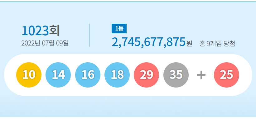 1023회 로또당첨번호 및 당청금액 안내