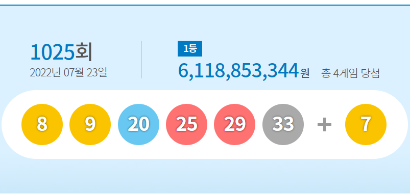 - 로또 1등 당첨게임 수 : 4게임 ( 당첨금액 : 6,118,853,344원)