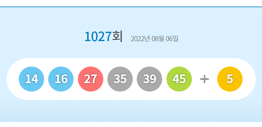 • 로또 5등 당첨게임 수 : 2,217,201게임 ( 당첨금액 : 5,000원)