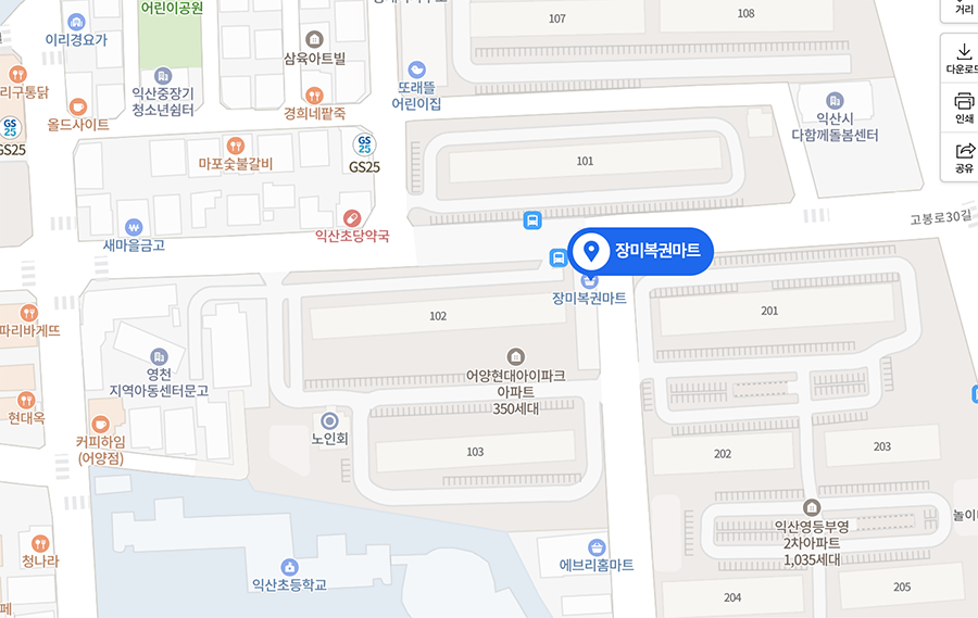 주소 : 전북 익산시 동서로61길 41 현대아파트1층108호 (어양동 493-12)