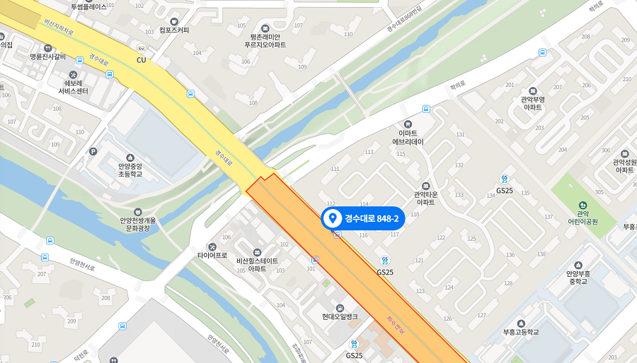 주소 : 경기 안양시 동안구 경수대로 848-2 동안구가로판매대2005-00065 (비산동 1144)