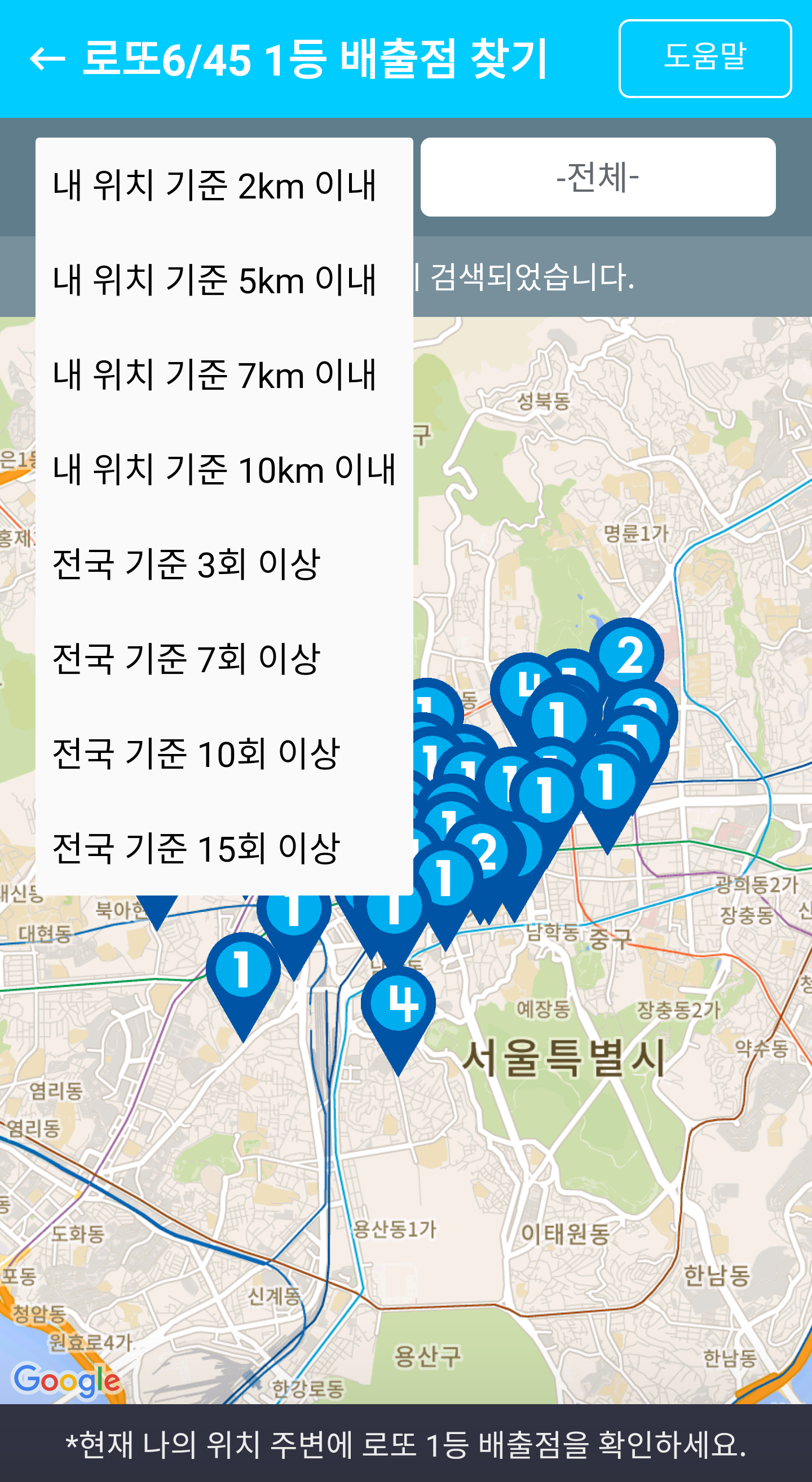다음으로 일등 배출점 찾기 검색 조건이 추가되었습니다. (전국 기준 15회 이상)