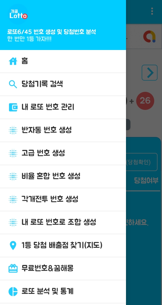 이 앱의 데이터는 대한민국 동행복권(lotto645)를 기준으로 제공합니다.