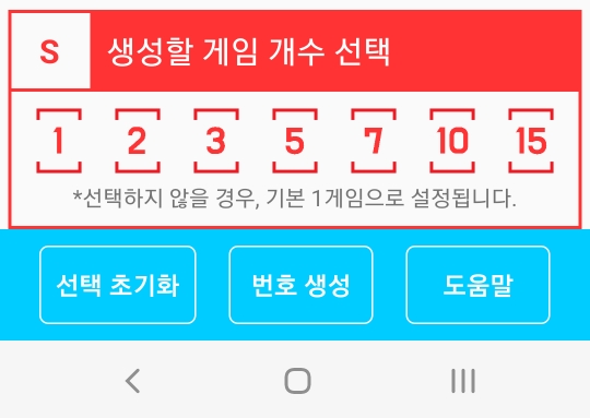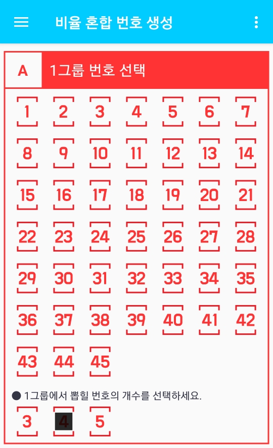 3. 1그룹에서 뽑힐 번호의 개수를 선택합니다.
