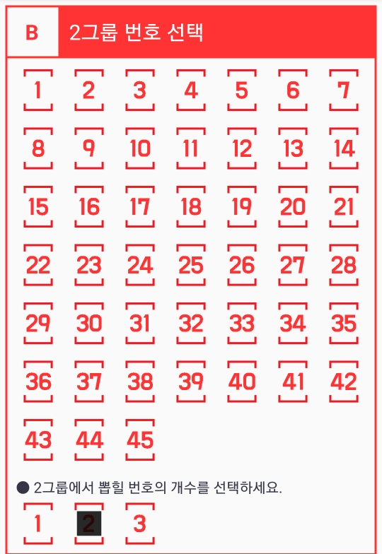 4. 2그룹에서 조합할 번호를 선택합니다.