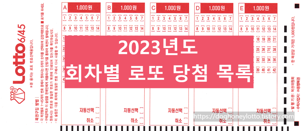 2023년도 회차별 로또 당첨번호 확인을 위한 목록입니다.