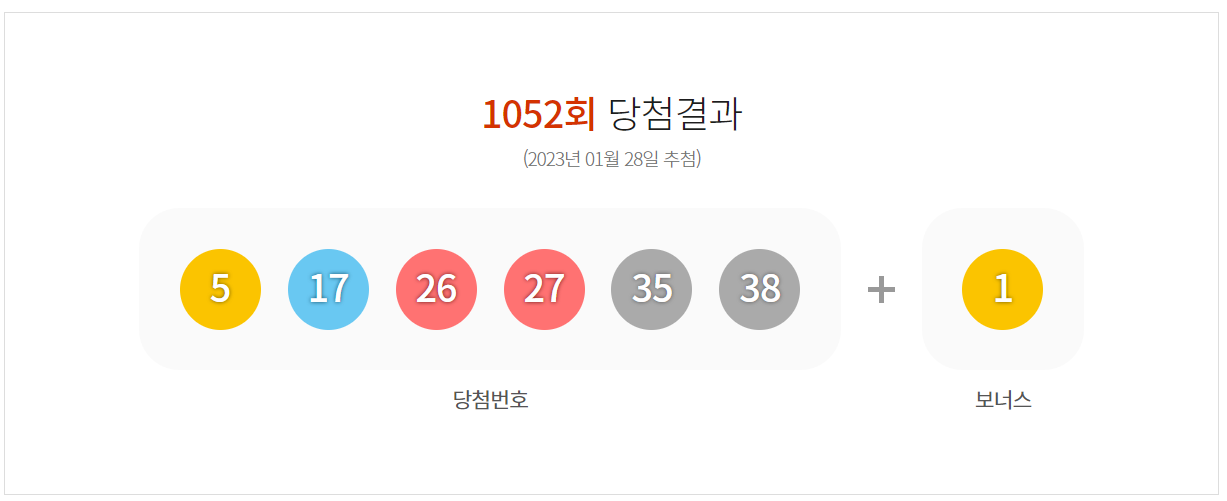 1052회 로또 당첨번호