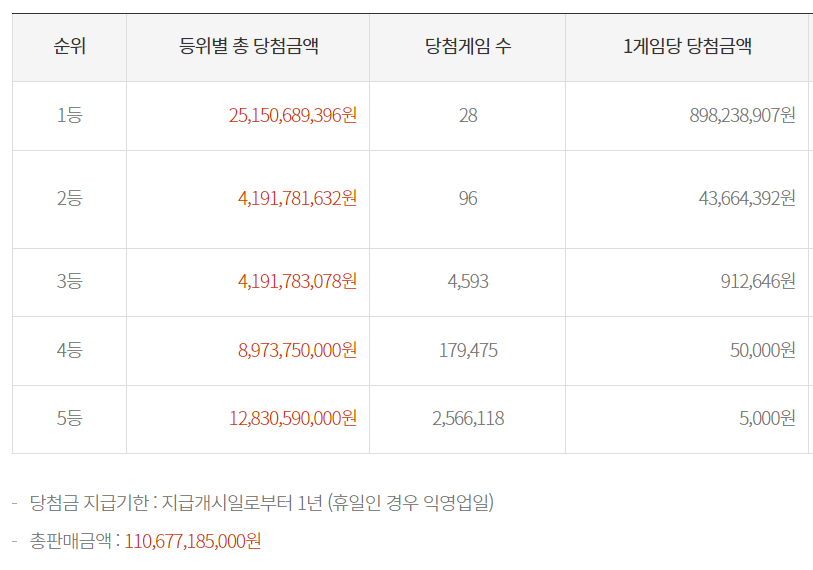 | 로또 4등, 5등 | 일반 로또 판매점과 농협은행 각 지점에서 당첨금을 지급 받음 |