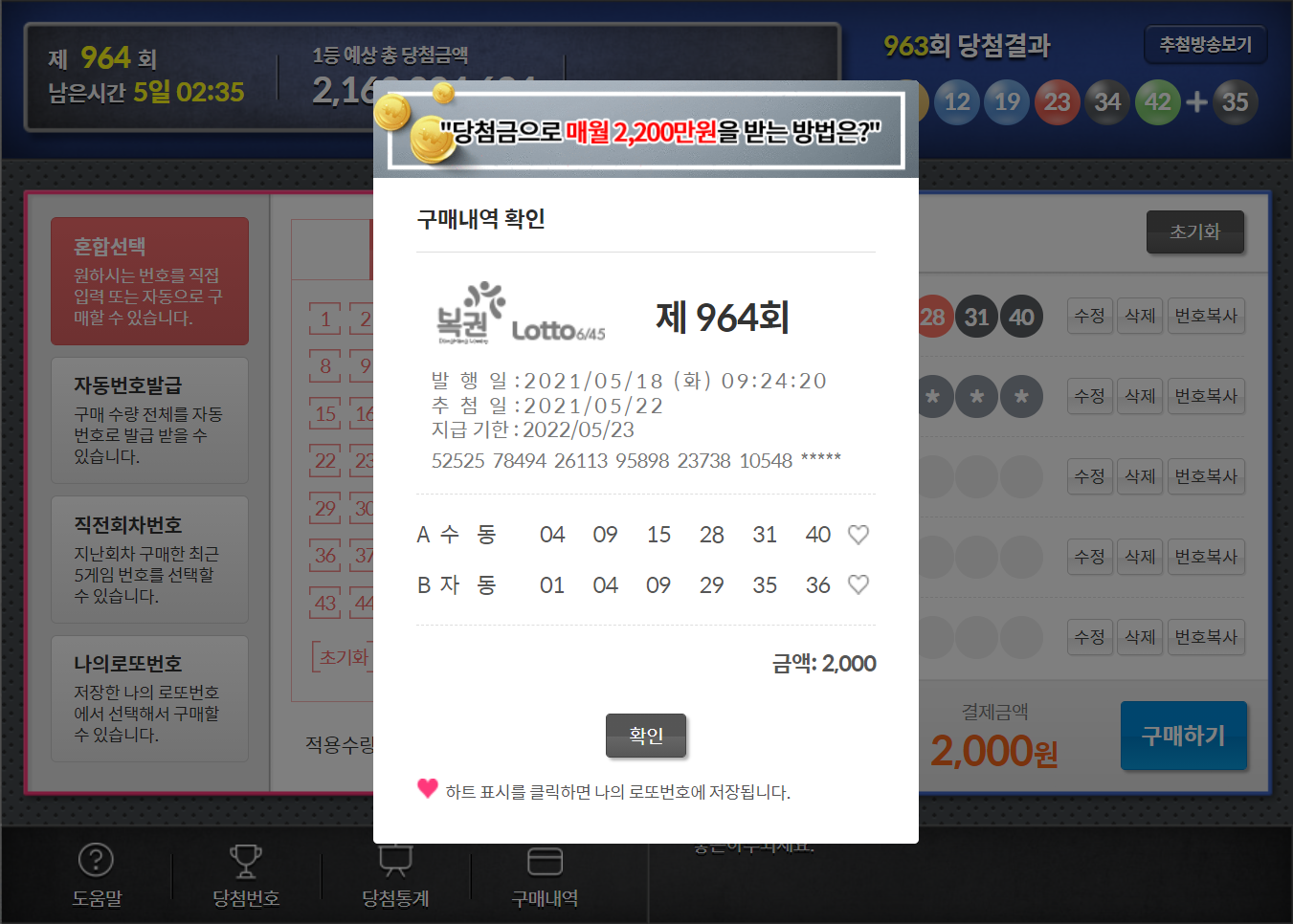 온라인 동행복권 사이트에서 구매를 하고 있어요.
