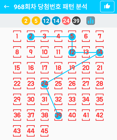 | 968 | 2, 5, 12, 14, 24, 39 + 33 | 홀:짝(2:4) |