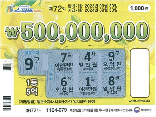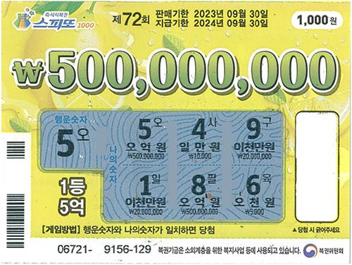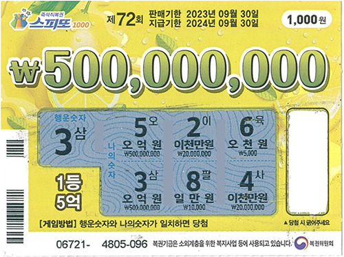 | 72 | 1 | 500,000,000 | 2023.07.18 | 그린복권방 |